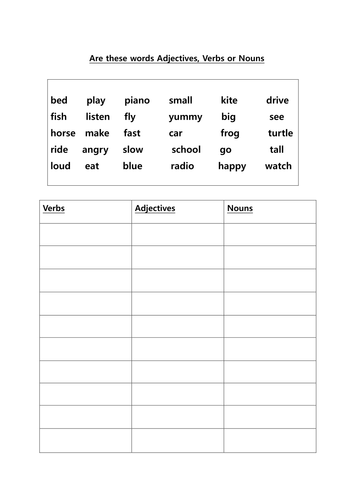 You'll be given separate lists of adjectives, adverbs, nouns, verbs and even a. Adjectives describe nouns and pronouns. List of english verbs, nouns, adjectives, adverbs, online tutorial to english language, excellent resource for english nouns, learn nouns, adjectives list. Describe a verb, adjective or adverb. Verbs, nouns, adjectives and adverbs. Learn how to recognize nouns, verbs, adjectives, and adverbs in this important basic grammar lesson. A word used to qualify noun, number, colour and so on. Quickly, slowly, quietly, loudly, gently, softly, gracefully, carefully, neatly, easily, truthfully, kindly, bravely, scarily, sleepily, excitedly, energetically. A word used to denote state of being (is, am, are, was, were), any action adverb: So let's do one at a time. Small, big, good, well, blue. This useful pack features word mats with lists of words that are split into different categories by subject to make your life easier and. This makes it very easy to identify adverbs in sentences.
